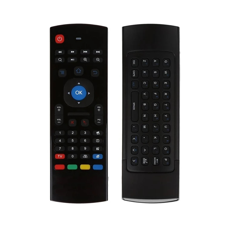 Souris volante 1.2.4G2. clavier3. Curseur de souris marche/arrêt4. Batterie: AAA X2 non incluse5. Contrôle IR + partie des touches pour l’apprentissage IR6.Distance de télécommande jusqu’à 15 mètres7. puissance de travail: moins de 10mA dans la condition de travailCapteurs à inertie 8.6 axes, supportant les jeux somatosensoriels9. Prend en charge les systèmes Android,Wins,Mac OS,Linux